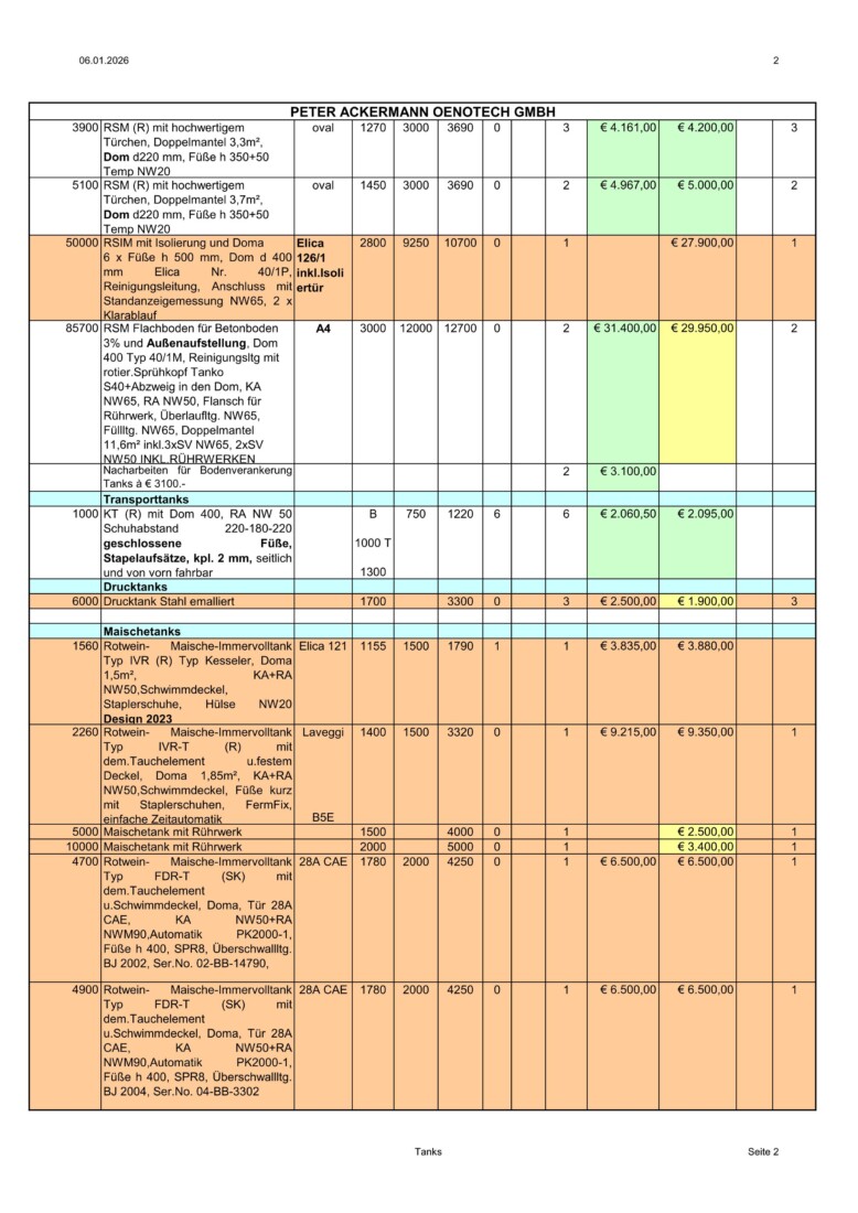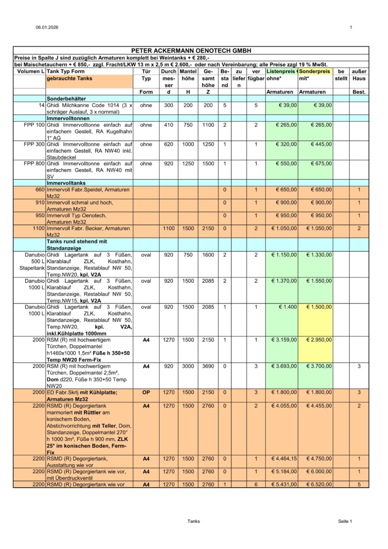 Aktueller Lagerlistenauszug Oenotech.de Stand 06.01.26 Oenotech.de Lagerlistenauszug 06.01.26 Seite 1 Oenotech.de Lagerlistenauszug 06.01.26 Seite 2